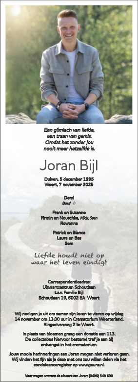 Gesproken op 14 november 2025 door Daan Siero en Pieter Kemper op de crematie van Joran:
